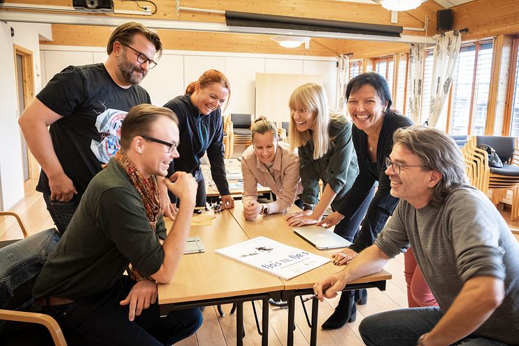 Markedsrådet i Trysil som fungerer som styringsgruppe inn mot filmprosjektet. Fra venstre regissør Petter Holmsen, produsent Kjetil Omberg, Gudrun Sanaker Lohne, daglig leder i Destinasjon Trysil, Gro Kveldro Bruksås, PR- og markedsansvarlig i Destinasjon Trysil, Maria Belin, salgs- og markedsdirektør i Radisson Blu Resort Trysil, Turid Backe-Viken, salgs- og markedssjef i Skistar Trysil og Stig Hjerkinn Haug, produsent og daglig leder i produksjonsselskapet Stig og Stein Studio.