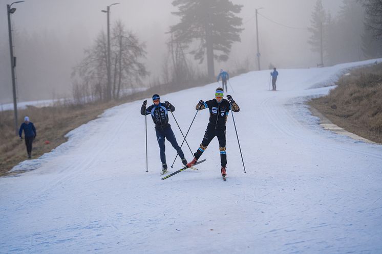 En av dem som legger treningen på tidligsnø i Trysil er Stian Berg (t.h.), som går for Team Kaffebrenneriet og satser på Ski Classics løp i vinter.