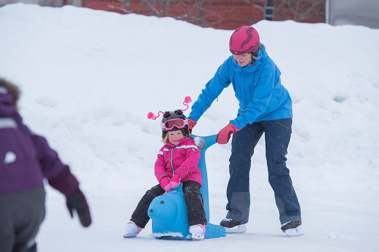 Et besøk på skøytebanen gir garantert store smil hos både små og store! Skøytebanen ligger ved elva, i Trysil sentrum. Banen er klargjort så sant vær og forhold tillater det og er gratis å bruke. Banen har flomlys som lyser hele kvelden. Skøyter må du ta med selv.