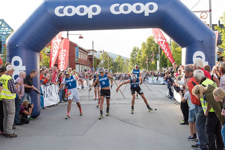 Det ble en spennende finale i årets Coop Trysil rulleskisprint. Johannes Høsflot Klæbo var først i mål.