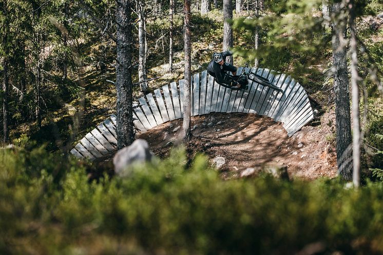 I Trysil har de bygget over 50 kilometer med tilretttelagte sykkelstier som er gradert fra grønn til svart. Her fra en av de mer tekniske sykkelstiene i Trysil.