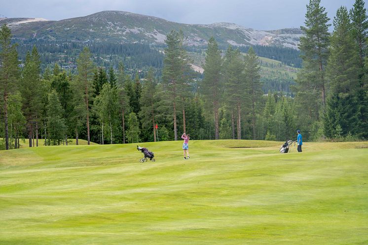 Selv om fjellet blir rødt, er Trysilfjellet golfbane grønn hele høsten.
