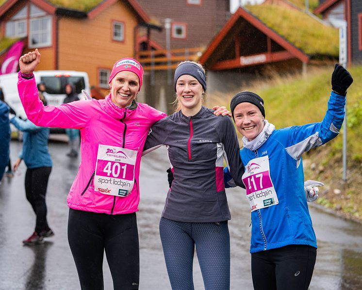 Delt førsteplass i 6 km-klassen mellom Mina Nerhagen og Jenny Marie Holter. Til høyre Hilde Helseth som fikk tredjeplass. Foto: Jonas Sjögren