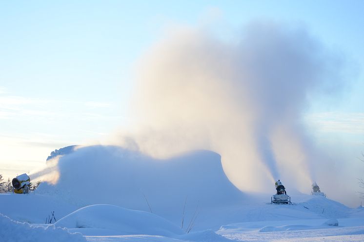 Jobben med å utvikle et snødeponi i Trysil startet allerede i fjor. Det ble investert 4 millioner kroner i høyeffektive snøkanoner på langrennsarenaen, i tillegg til at det ble planert for deponiet.