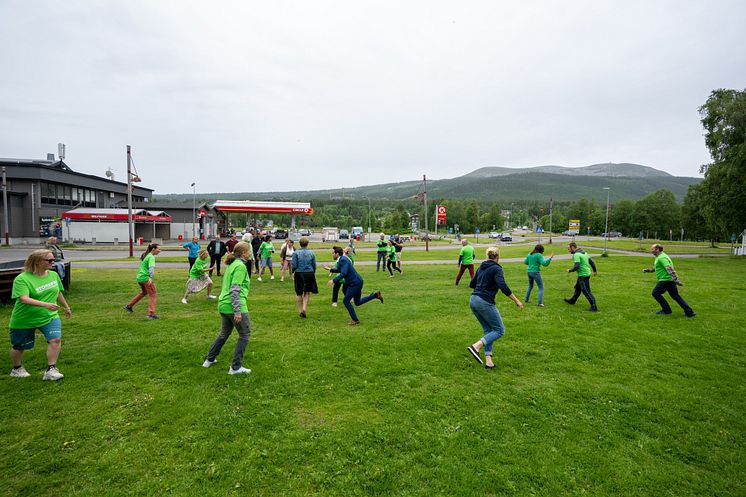 Det var god stemning og mye latter da Destinasjon Trysil inviterte til et lekent storefri for alle bedrifter i kommunen tirsdag 21. juni. Ordfører Erik Sletten, ledet an med den tradisjonelle leken Rødt lys.